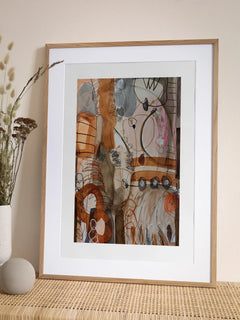 Dieses moderne Poster zeigt eine abstrakte Malerei in verschiedenen Brauntönen, ergänzt durch Linien und Formen in kontrastierenden Farben. Die Komposition ist dynamisch und vielseitig, was sie zu einer idealen Ergänzung für ein stilvolles Wohnzimmer oder Schlafzimmer macht. Die trendigen Farben und das kreative Design verleihen jedem Raum eine künstlerische Note.
