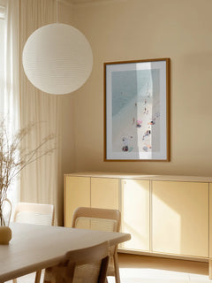 Du musst keine Ösen einschrauben oder Drähte spannen. Jeder Rahmen hat vormontierte Schwerlast-Aufhänger für beide Formate. Nagel in die Wand, Rahmen dran, fertig – dein Bild hängt sicher, gerade und liegt flach an der Wand an.