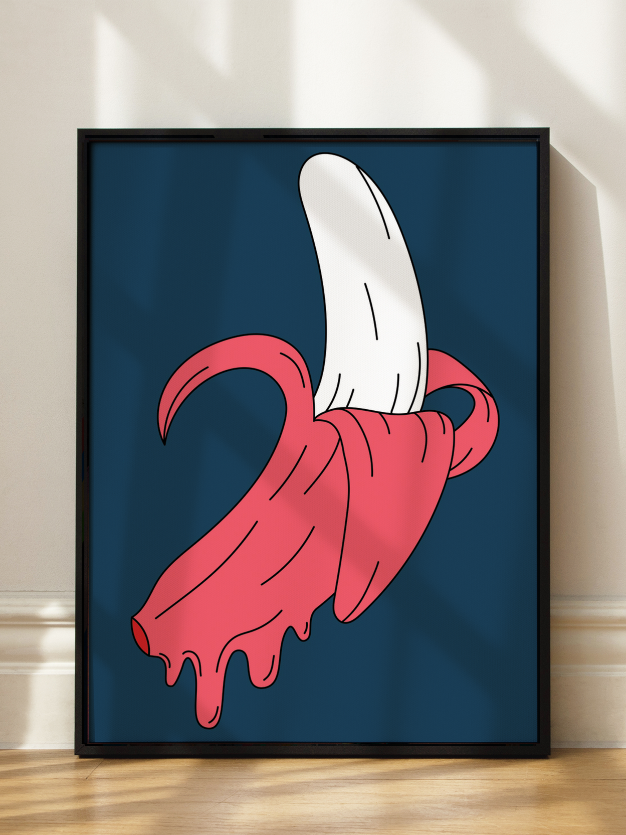 Dieses Poster zeigt eine Banane mit einer auffälligen rosa Schale vor einem tiefblauen Hintergrund. Die ungewöhnliche Farbgebung verleiht dem Bild einen modernen und kreativen Touch, der perfekt für zeitgenössische Wohnräume geeignet ist. Die Kombination aus kräftigen Farben und minimalistischen Formen macht es zu einem Blickfang in jeder Umgebung.