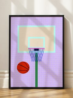 Dieses Poster zeigt einen Basketballkorb in lebendigen Farben vor einem hellen lila Hintergrund. Der Basketballkorb ist in einem modernen, grafischen Stil dargestellt, der die Dynamik und Energie des Sports einfängt. Perfekt für Sportliebhaber, bringt dieses Kunstwerk eine sportliche und dynamische Atmosphäre in jeden Raum.