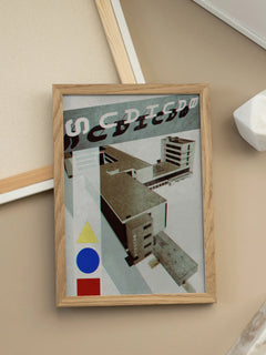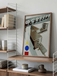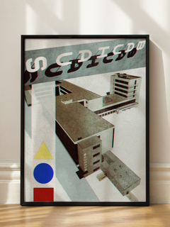 Dieses Poster zeigt eine stilisierte Illustration eines Bauhaus-Gebäudes, das die charakteristischen Primärfarben Gelb, Blau und Rot verwendet. Die geometrischen Formen und klaren Linien spiegeln die Essenz der Bauhaus-Architektur wider, die für ihre funktionale Ästhetik und innovative Gestaltung bekannt ist. Dieses Kunstwerk ist perfekt für Liebhaber moderner Architektur und Designgeschichte.