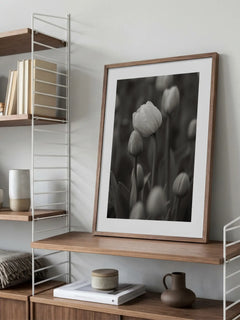 Dieses elegante Poster zeigt eine Tulpenblüte in einem stilvollen Schwarz-Weiß-Design. Die Komposition hebt die natürliche Schönheit und Anmut der Tulpe hervor und verleiht jedem Raum, sei es Küche oder Flur, einen Hauch von Raffinesse. Das monochrome Farbschema unterstreicht die zeitlose Eleganz der Blume und schafft eine ruhige und harmonische Atmosphäre.