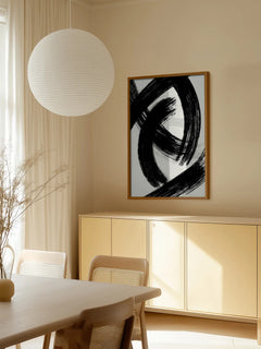 Dieses Schwarz-Weiß-Poster zeigt eine dynamische Komposition aus abstrakten Pinselstrichen. Die kräftigen schwarzen Linien auf weißem Hintergrund schaffen ein ausdrucksstarkes und minimalistisches Kunstwerk, das sich perfekt in moderne Wohnräume einfügt. Ideal für Liebhaber von zeitgenössischer und abstrakter Kunst.