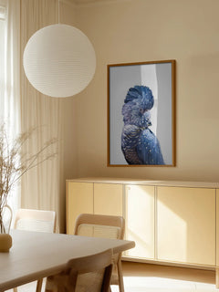 Dieses beeindruckende Poster zeigt die Fotografie eines schwarzen Kakadus mit gelben Flecken vor einem hellgrauen Hintergrund. Der Kontrast zwischen den dunklen Federn des Vogels und den leuchtenden gelben Akzenten verleiht dem Bild eine besondere Dynamik. Perfekt, um jedem Raum einen Hauch von Eleganz und Lebendigkeit zu verleihen.
