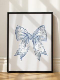 Eine blaue Schleife in eleganter Line-Art-Technik gezeichnet. Funktioniert besonders gut über dem Wickeltisch oder neben dem Kleiderschrank. Ergänzt verspielte und romantische Einrichtung.