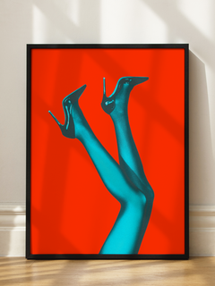 Dieses moderne Poster zeigt Beine in hochhackigen blauen Stiefeln vor einem kräftigen roten Hintergrund. Die kontrastierenden Farben verleihen dem Bild eine dynamische und trendige Ausstrahlung, die jedem Raum einen frischen und stilvollen Akzent verleiht. Perfekt für alle, die ein modernes und auffälliges Design suchen.