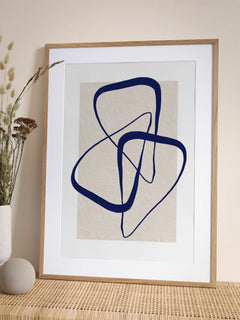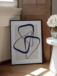 Dieses moderne Poster zeigt abstrakte Linien in Dunkelblau auf einem beigen Hintergrund mit einem strukturierten Effekt. Die trendigen Farben und das minimalistische Design machen es perfekt für das Wohnzimmer oder den Flur. Es verleiht jedem Raum eine zeitgenössische und stilvolle Note.