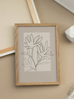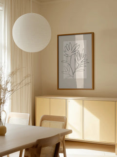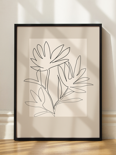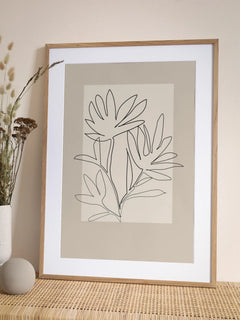 Stilisierte Pflanzenformen in minimalistischer Line Art Darstellung auf warmem beigen Hintergrund. Ergänzt moderne und skandinavische Einrichtung perfekt. Ein ruhiger Akzent der natürliche Eleganz ausstrahlt.