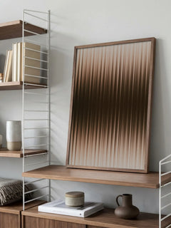 Vertikale Streifen in warmen Brauntönen schaffen einen eleganten Farbverlauf von hell zu dunkel. Das moderne Muster setzt einen stilvollen Akzent in Büro- und Wohnräumen. Passt zu neutralen und erdigen Farbkonzepten.