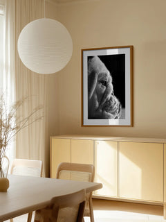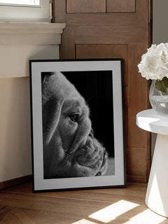 Diese beeindruckende Schwarz-Weiß-Fotografie zeigt den Kopf einer Bulldogge aus der Seitenansicht. Die detaillierte Darstellung der Falten und der Textur des Fells verleiht dem Bild eine besondere Tiefe und Ausdruckskraft. Dieses niedliche Poster ist perfekt für ein Zuhause, in dem Tierliebe herrscht, und bringt einen Hauch von Eleganz und Charakter in jeden Raum.
