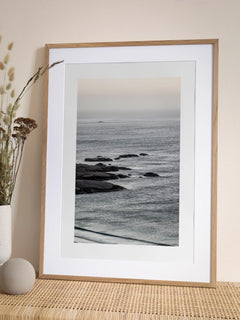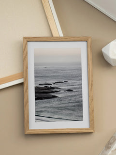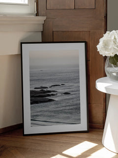 Dieses Poster zeigt eine beruhigende Fotografie von Felsen, die im ruhigen Meer liegen, mit einem hellen Himmel im Hintergrund. Die sanften Wellen und der klare Horizont schaffen eine entspannende Atmosphäre, die ideal ist, um Ruhe und Gelassenheit in dein Zuhause zu bringen. Perfekt für alle, die die Schönheit der Natur schätzen und eine friedliche Umgebung schaffen möchten.