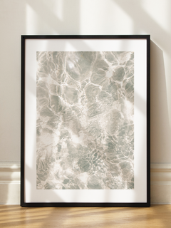 Dieses Poster zeigt eine Fotografie von Wasser mit sanften Lichtreflexionen in Beige. Die ruhige und beruhigende Darstellung eignet sich perfekt, um eine entspannte Atmosphäre in jedem Raum zu schaffen. Die subtilen Farbnuancen und das Spiel von Licht und Schatten verleihen dem Bild eine elegante und zeitlose Qualität.