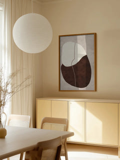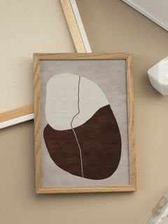 Dieses Poster zeigt eine grafische Illustration mit einer abstrakten Form in Braun und Beige, durchzogen von schwarzen Linien auf einem beigen Hintergrund. Die erdigen Farbtöne verleihen dem Bild eine beruhigende und natürliche Ausstrahlung, die es ideal für die Dekoration eines Wohnzimmers macht. Die Kombination aus organischen Formen und minimalistischen Linien schafft ein modernes und stilvolles Ambiente.