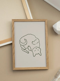 Eine schlafende Katze in minimalistischer Line-Art-Darstellung auf warmem beigen Hintergrund. Funktioniert besonders gut über dem Bett oder Sofa. Die ruhige Ausstrahlung unterstützt entspannte Atmosphäre im Raum.