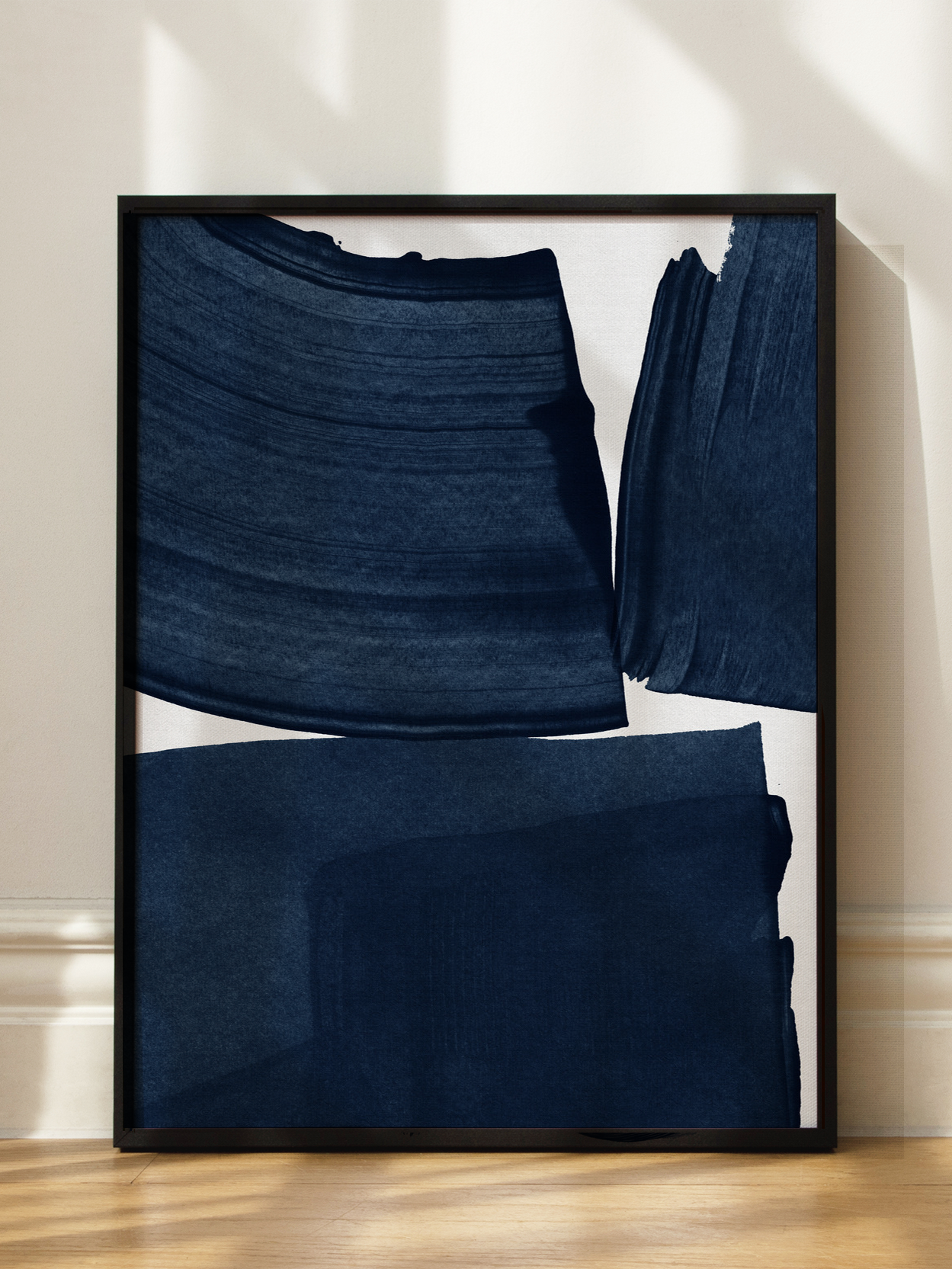Abstrakte Illustration mit dunkelblauen Pinselstrichen auf grauem Hintergrund. Die groben Pinselstriche verleihen dem Poster einen schönen Effekt und machen es zu einem wirklich einzigartigen Stück!