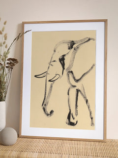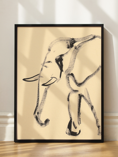 Diese Strichzeichnung eines Elefanten in Schwarz auf beigem Hintergrund besticht durch ihr minimalistisches Design. Die einfache und elegante Darstellung des Elefanten verleiht jedem Raum eine ruhige und stilvolle Atmosphäre. Perfekt für Liebhaber von moderner Kunst und Tiermotiven, fügt sich dieses Poster nahtlos in jede Einrichtung ein.