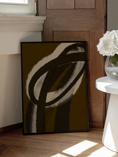 Dieses abstrakte Poster zeigt braune und beige Linien, die sich auf einem dunkelbraunen Hintergrund schlängeln. Die trendige Wandkunst mit modernen Farben eignet sich perfekt für das Wohnzimmer oder den Flur und verleiht jedem Raum eine stilvolle und zeitgemäße Note.