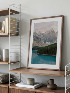 Dieses atemberaubende Naturposter zeigt Moraine Lake, einen blauen See, der von einem dichten Wald und majestätischen, schneebedeckten Bergen umgeben ist. Die ruhige und friedliche Atmosphäre dieses Bildes lädt dazu ein, sich zu entspannen und neue Energie zu tanken. Perfekt für ein Zuhause, das Ruhe und Gelassenheit ausstrahlen soll.