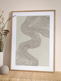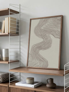 Dieses abstrakte Poster zeigt geschwungene Linien in Braun auf einem beigen Hintergrund. Die fließenden Linien schaffen eine harmonische und moderne Ästhetik, die jedem Raum einen zeitgenössischen Touch verleiht. Perfekt für Liebhaber minimalistischer Kunst, die ihrem Zuhause eine elegante Note hinzufügen möchten.