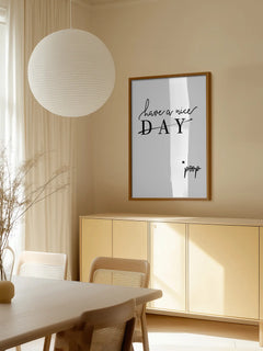 Dieses humorvolle Schwarz-Weiß-Textposter zeigt den Text "Have a nice day", wobei das Wort "Day" durchgestrichen ist und darunter das Wort "Poop" steht. Ein lustiges und freches Poster, das perfekt für das Badezimmer geeignet ist und jedem Betrachter ein Lächeln ins Gesicht zaubert.