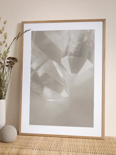 Dieses Poster zeigt eine faszinierende Fotografie von klaren, hellen Kristallen vor einem sanften beigen Hintergrund. Die Komposition fängt die Schönheit und Reinheit der Kristalle ein und schafft eine beruhigende und harmonische Atmosphäre. Perfekt für Kristallliebhaber und ideal, um deinem Schlafzimmer eine elegante und spirituelle Note zu verleihen.