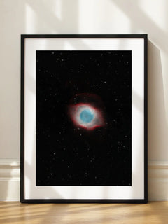 Entdecke das faszinierende Helix-Nebel-Poster, das den ikonischen planetarischen Nebel im Sternbild Wassermann zeigt. Mit einem Durchmesser von etwa 2,5 Lichtjahren ist es eines der nächsten Objekte dieser Art zur Erde. Der Nebel entstand, als ein sonnenähnlicher Stern seine äußeren Schichten abwarf und einen weißen Zwerg zurückließ. Dieses Poster fängt die Schönheit und Komplexität des Helix-Nebels ein und ist ein Muss für Astronomie-Enthusiasten und Kunstliebhaber. Es ist perfekt, um jedem Raum einen Hauch von kosmischem Wunder zu verleihen.
