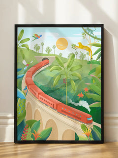Jungle Train Illustration Poster