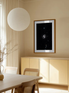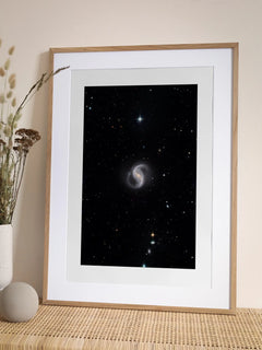 Dieses Poster zeigt eine faszinierende Fotografie einer Galaxie, die die Form des Buchstabens S annimmt. Der schwarze Hintergrund ist mit zahlreichen weißen Sternen übersät, die die unendliche Weite des Universums darstellen. Ein perfektes Kunstwerk für alle Weltraumliebhaber, das sowohl zum Träumen als auch zum Staunen einlädt.