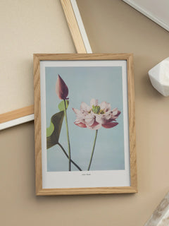 Dieses Poster zeigt eine zarte rosa Lotusblume und eine Knospe vor einem sanften blauen Hintergrund. Der Text "Lotus Flower" ist dezent unter dem Bild platziert. Die Komposition strahlt Ruhe und Eleganz aus und ist eine hervorragende Wahl für Schlafzimmer oder Wohnzimmer, um eine friedliche und harmonische Atmosphäre zu schaffen.