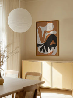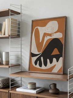 Dieses moderne Poster zeigt eine grafische Illustration einer Figur in Schwarz und Beige auf einem braunen Hintergrund. Die stilisierte Darstellung kombiniert einfache Linien und Formen, um eine elegante und zeitgemäße Ästhetik zu schaffen. Die trendigen Farben machen es zu einer perfekten Ergänzung für dein Wohnzimmer und verleihen jedem Raum eine moderne Note.