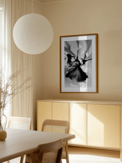 Das Poster zeigt eine Ballerina in einer dynamischen Bewegung, eingefangen in einer Schwarz-Weiß-Fotografie. Die negative Darstellung verstärkt die fließenden Bewegungen und verleiht dem Bild eine besondere Dramatik. Die Tänzerin strahlt Anmut und Eleganz aus, während sie in einem Moment der Perfektion eingefroren ist. Diese künstlerische Darstellung eignet sich perfekt, um jedem Raum eine elegante und künstlerische Note zu verleihen.