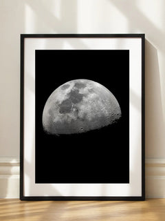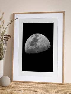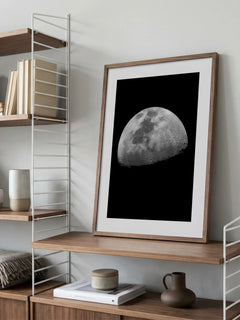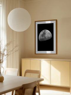 Diese beeindruckende Schwarz-Weiß-Fotografie zeigt den Mond in all seiner Pracht vor einem tiefschwarzen Hintergrund. Die Details der Mondoberfläche sind klar und faszinierend, was dieses klassische Poster zu einem perfekten Stück für das Zuhause eines jeden Astronomie-Liebhabers macht. Es fängt die zeitlose Schönheit und das Geheimnis des Mondes ein und bringt eine ruhige, nachdenkliche Atmosphäre in jeden Raum.