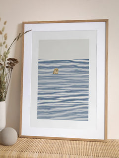 Dieses bezaubernde Poster zeigt eine Illustration eines Otters, der im Wasser schwimmt. Der Hintergrund besteht aus einem beigen Himmel und blauem Wasser, das durch horizontale Linien dargestellt wird. Die sanften Farben und das niedliche Motiv machen es zu einer idealen Dekoration für das Kinderzimmer. Es strahlt eine fröhliche und verspielte Atmosphäre aus, die Kinder begeistern wird.