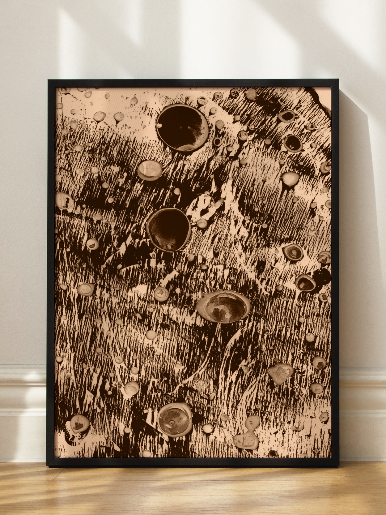 Dieses abstrakte Kunstwerk in Beige- und Brauntönen zeigt eine faszinierende Komposition aus organischen Formen und Texturen. Die verschiedenen Schattierungen und Muster erzeugen eine dynamische und zugleich beruhigende Wirkung. Perfekt, um eine Bilderwand zu vervollständigen oder als eigenständiges Kunstwerk in jedem Raum zu wirken.
