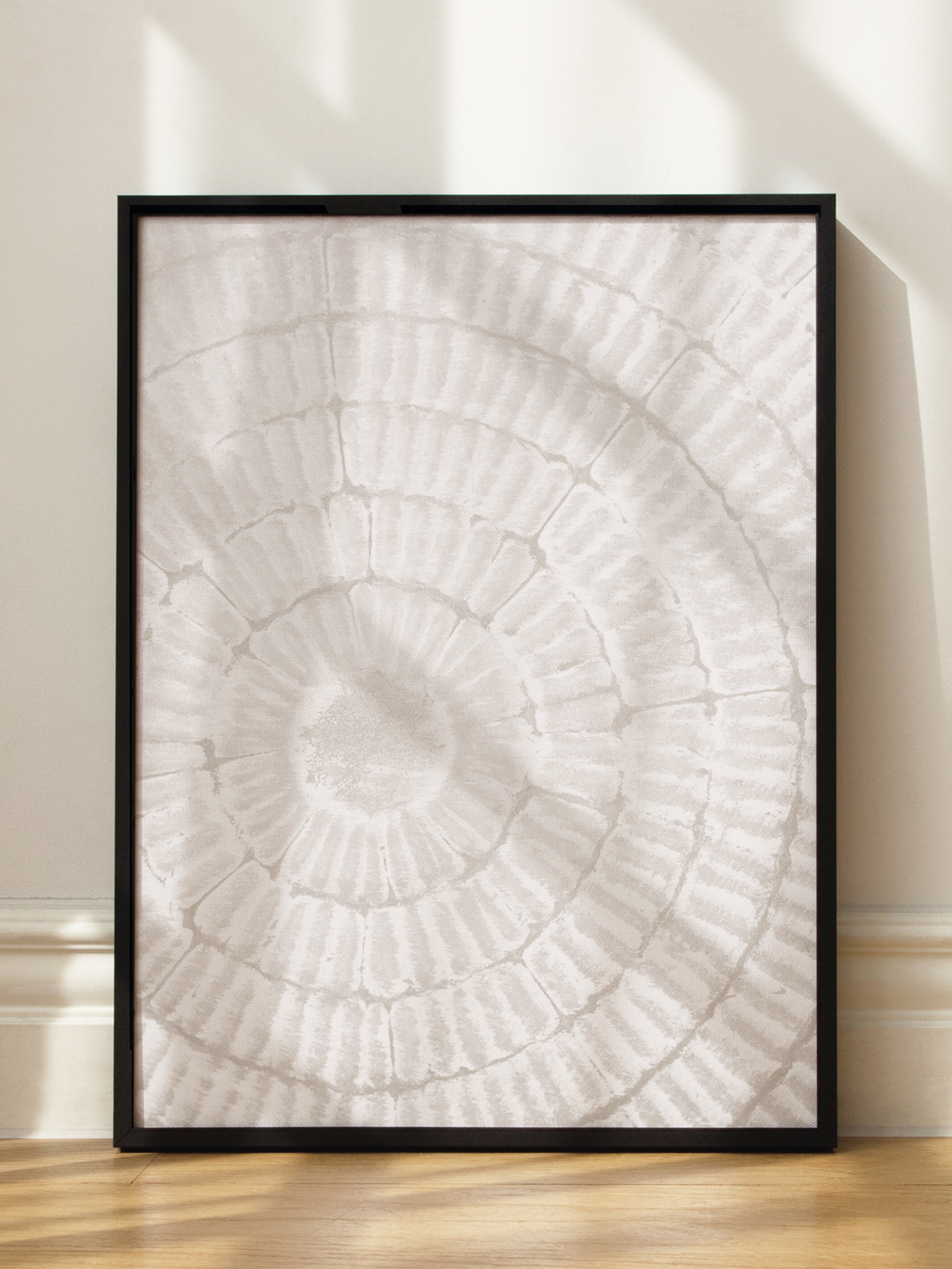 Dieses Poster zeigt ein elegantes, minimalistisches Design mit konzentrischen Kreisen in einem sanften Beigeton. Die neutrale Farbgebung und das beruhigende Muster machen es zu einer idealen Ergänzung für moderne Wohn- oder Schlafzimmer. Es strahlt Ruhe und Harmonie aus und fügt sich nahtlos in verschiedene Einrichtungsstile ein.
