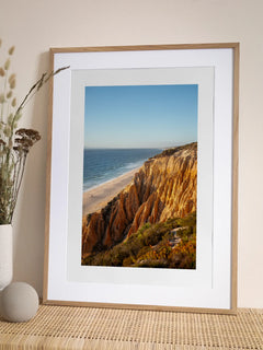 Erlebe die atemberaubende Schönheit von Praia da Galé in Portugal mit diesem Poster, das die goldenen Klippen und das azurblaue Meer zeigt. Die perfekte Wahl für Naturliebhaber, die ihre Wände mit der Essenz Portugals dekorieren möchten.
