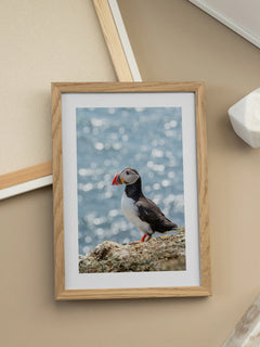 Dieses Poster zeigt eine beeindruckende Fotografie eines Papageientauchers, der auf einem Felsen steht. Der Vogel hat ein auffälliges schwarz-weißes Gefieder und einen leuchtend roten Schnabel. Der Hintergrund ist unscharf und zeigt das glitzernde Meer, was dem Bild eine frische und lebendige Atmosphäre verleiht. Papageientaucher sind faszinierende Tiere, und dieses Tierposter bringt einen Hauch von Natur und Lebendigkeit in dein Zuhause.