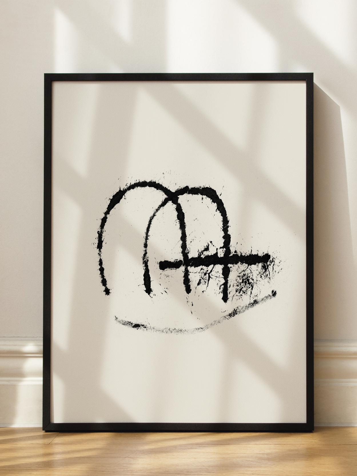 Dieses abstrakte Poster zeigt geschwungene, dicke Linien in Schwarz auf einem hellbeigen Hintergrund. Die ungleichmäßige Struktur der Linien verleiht dem Bild einen handgemachten und künstlerischen Charakter. Die Einfachheit und der Kontrast der Farben machen es zu einem vielseitigen Kunstwerk, das in verschiedenen Einrichtungsstilen zur Geltung kommt.