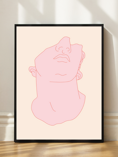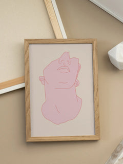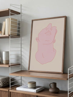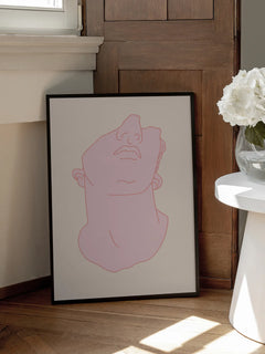 Abstrakte Körperlinien in sanftem Rosa zeigen eine weibliche Silhouette im minimalistischen Line-Art-Stil. Ein ruhiges Kunstwerk für moderne Schlaf- und Wohnräume. Die zarten Konturen schaffen eine entspannte Atmosphäre.