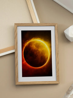 Ein faszinierendes Poster, das das Phänomen einer Sonnenfinsternis einfängt. Die leuchtend gelben und roten Farbtöne erzeugen einen dramatischen Kontrast zu den dunkleren Tönen. Ein atemberaubendes Stück, das die Schönheit und das Geheimnis der Natur widerspiegelt und jeden Raum aufwertet.