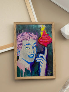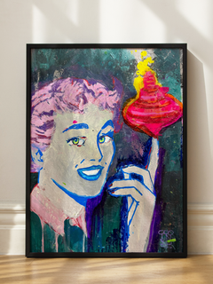 Dieses Poster zeigt eine Person mit rosa Haaren, die einen rotierenden Kreisel hält. Das Bild ist in lebhaften Farben gestaltet und verleiht jedem Raum einen Hauch von Pop-Art-Stil. Die dynamische Komposition und die kräftigen Farben machen es zu einem auffälligen Kunstwerk, das Energie und Kreativität ausstrahlt.