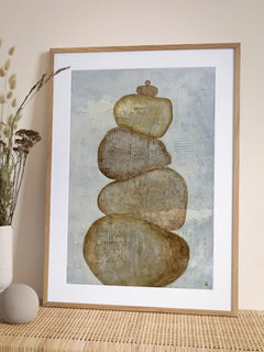 Ein Poster, das die ruhige Schönheit von Steinen in neutralen Farben einfängt. Dieses Poster zeigt eine Steinformation in sanften Beige- und Brauntönen, die ein Gefühl von Ruhe und Gelassenheit vermitteln. Die Steine sind mit feinen Details und Texturen illustriert, die ihre natürliche Schönheit betonen. Der Hintergrund ist in einem weichen, strukturierten Grau gehalten, das die Steine hervorhebt. Dieses Poster ist ideal für alle, die die Natur lieben oder eine ruhige, erdige Atmosphäre in ihrem Zuhause schaffen möchten.