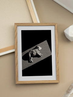 Du musst keine Ösen einschrauben oder Drähte spannen. Jeder Rahmen hat vormontierte Schwerlast-Aufhänger für beide Formate. Nagel in die Wand, Rahmen dran, fertig – dein Bild hängt sicher, gerade und liegt flach an der Wand an.