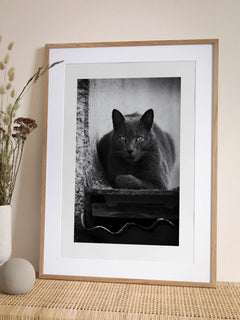Dieses Poster zeigt eine graue Katze, die entspannt auf einem Dach liegt. Die Schwarz-Weiß-Fotografie fängt die ruhige und gelassene Ausstrahlung der Katze ein und ist ideal für Katzenliebhaber. Die kontrastreichen Töne verleihen dem Bild eine zeitlose Eleganz und machen es zu einem stilvollen Dekorationsstück für jedes Zuhause.