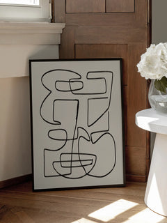 Ein Poster mit einem abstrakten Gesicht in einem Line-Art-Design in Schwarz auf einem beigefarbenen Hintergrund. Dieses Poster ist perfekt für alle, die Line-Art lieben und einen modernen, minimalistischen Touch in ihre Einrichtung bringen möchten. Die klaren Linien und der neutrale Hintergrund machen es vielseitig einsetzbar und ideal für verschiedene Wohnstile.